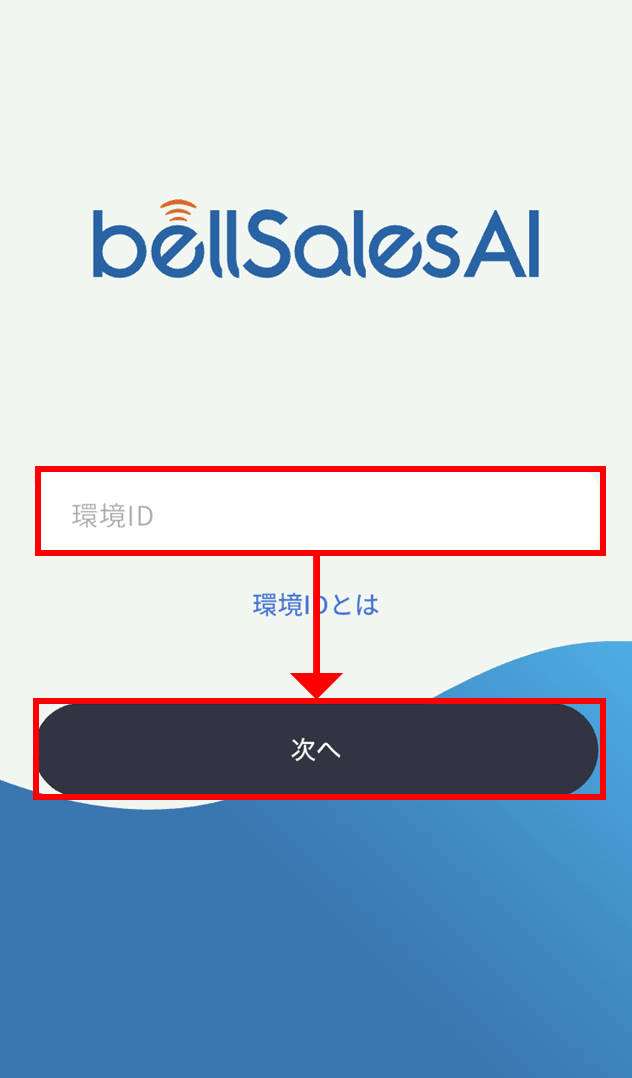 ご利用環境の環境IDを入力し、[次へ]をタップします。