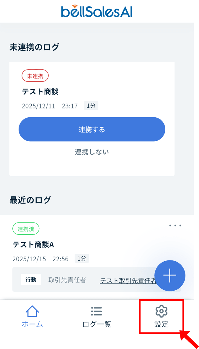 ※ 画面左上の設定ボタン(歯車アイコン)が表示される画面は、管理者の環境設定「スマホアプリのログ閲覧・編集を禁止する」のON/OFFにより異なります。
