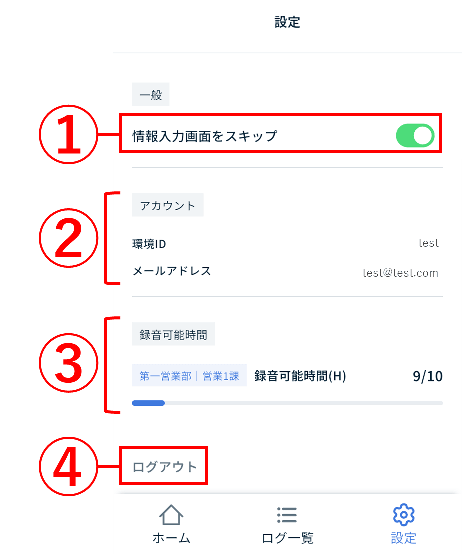記録終了後の「情報入力画面」のスキップON/OFFを切り替えることができます。