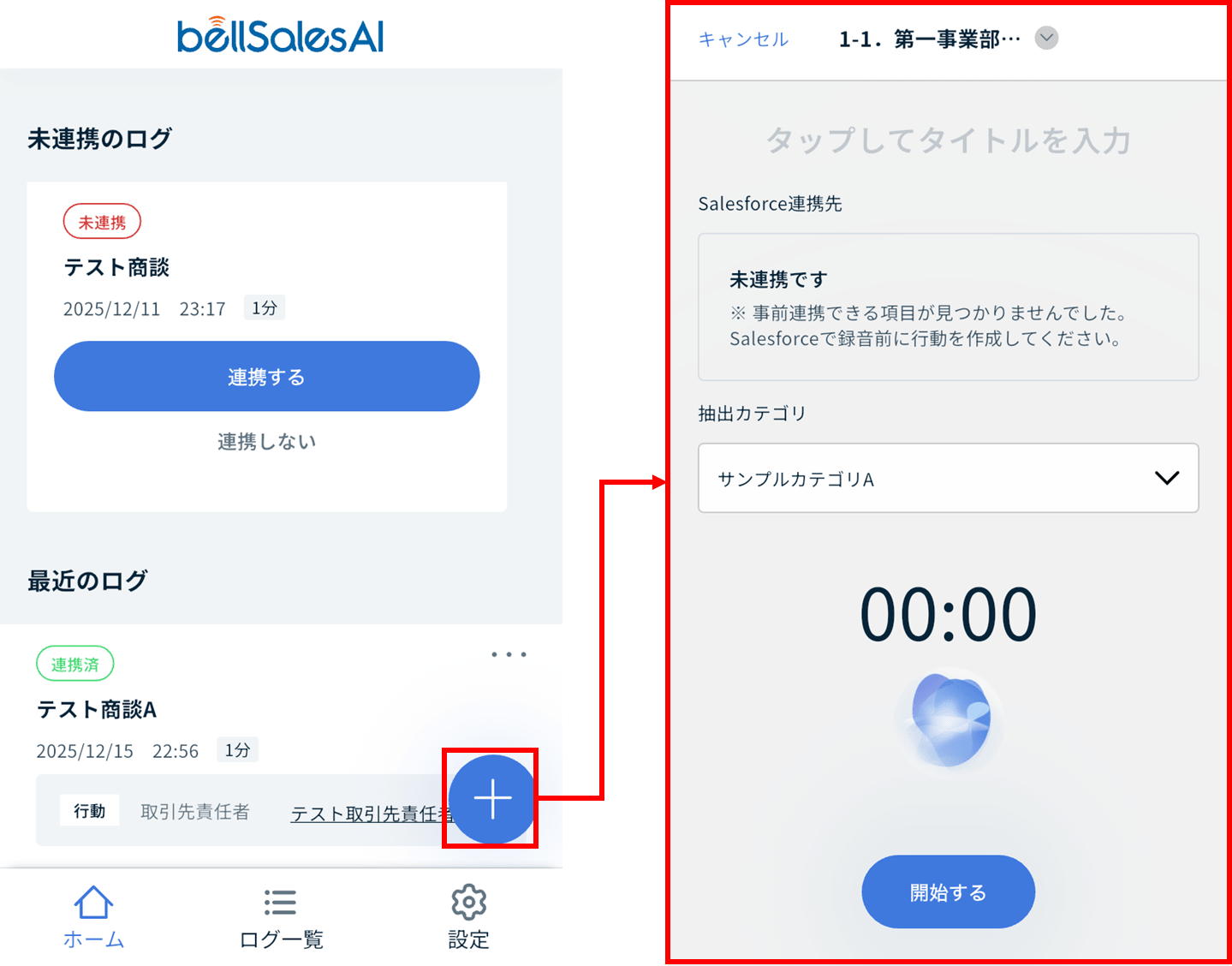ここではbellSalesAIスマホアプリでの記録開始手順を解説します。