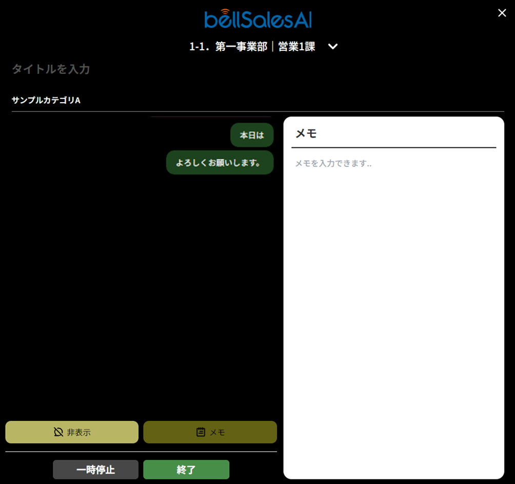 [終了]ボタンをクリックし、会話の記録を終了します。