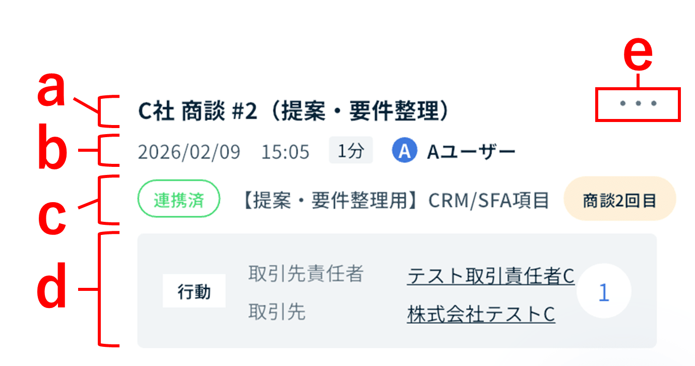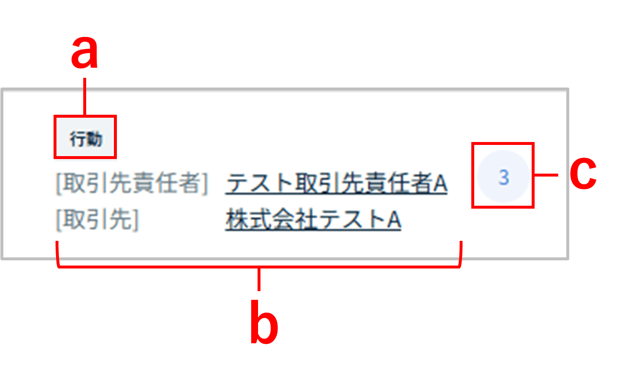 - b:行動に紐づく「名前」「関連先」