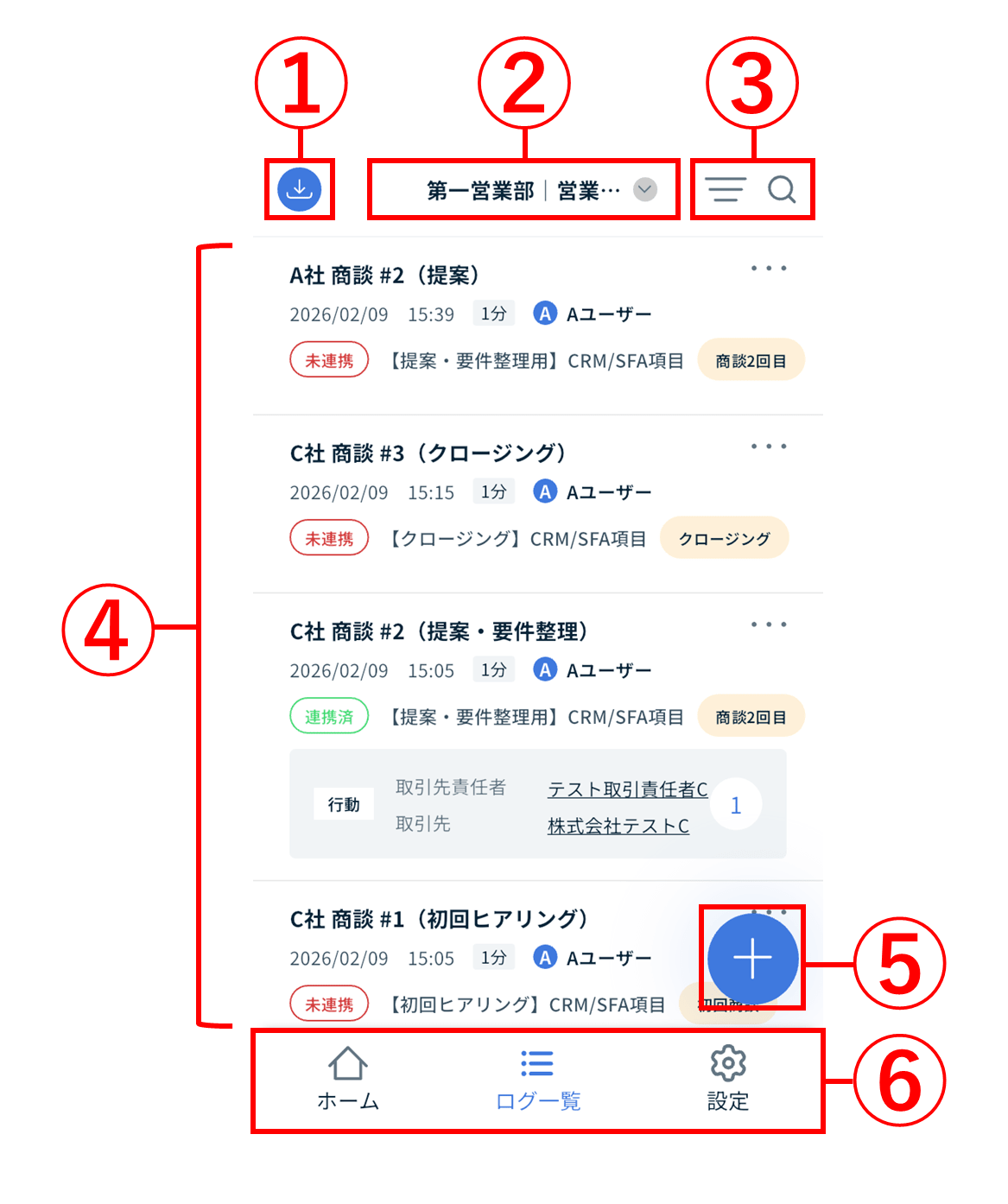 2-6.⑥:[ホーム]/[ログ一覧]/[設定]タブ