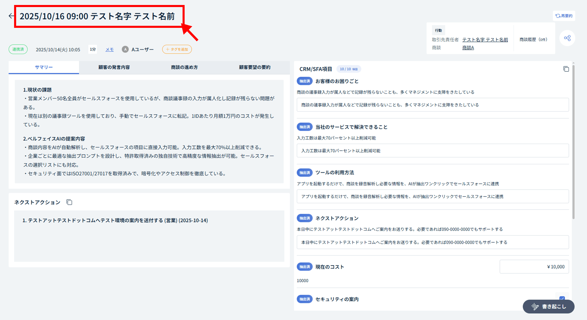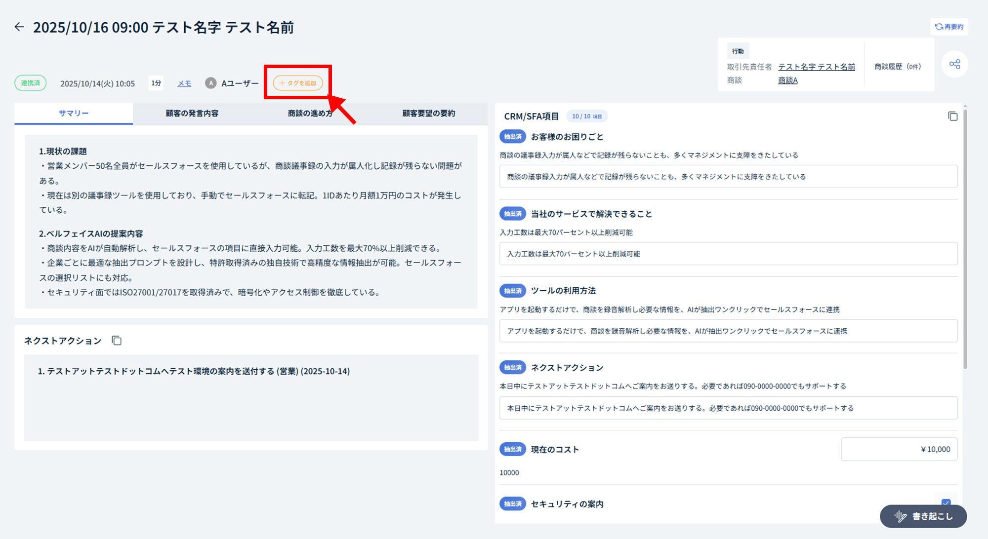 ログ詳細画面では、タイトル・タグを編集することができます。