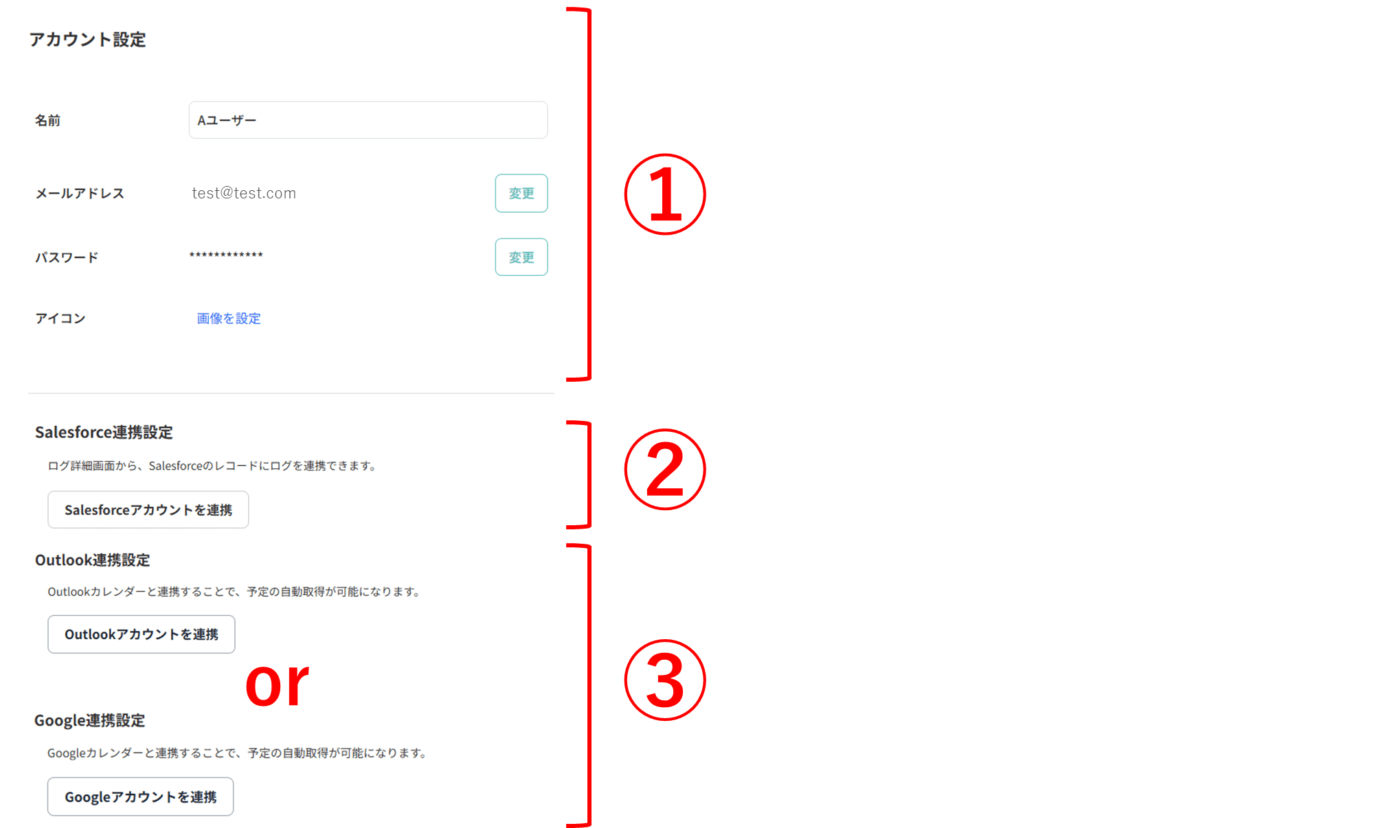 1-3.③:「Outlook連携設定」or「Google連携設定」