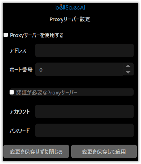 OS側でプロキシサーバーを設定している場合は、同様のプロキシサーバー・アカウント情報をPCアプリに設定してください。