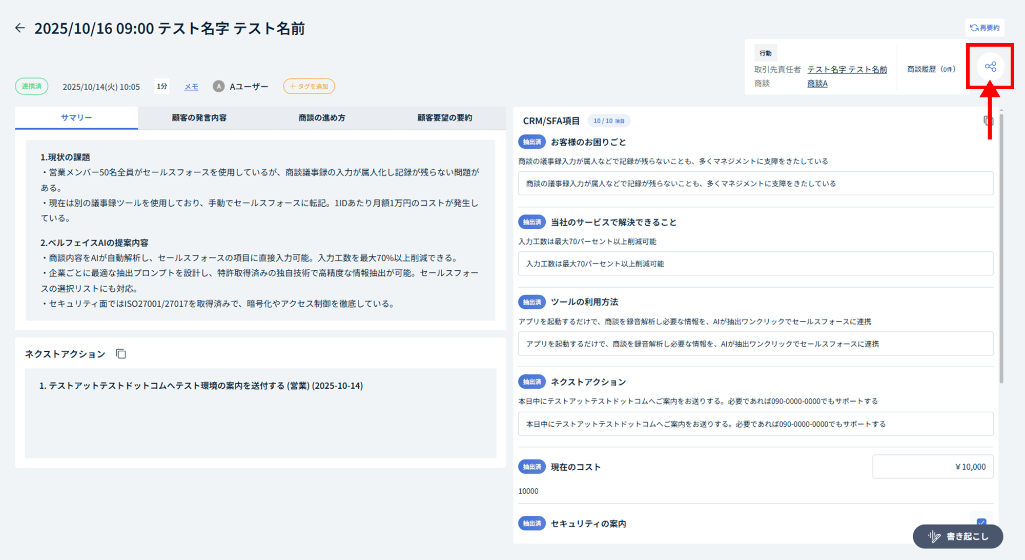 公開リンク機能とは、bellSalesAIを利用していないユーザーにログの内容を共有することができる機能です。