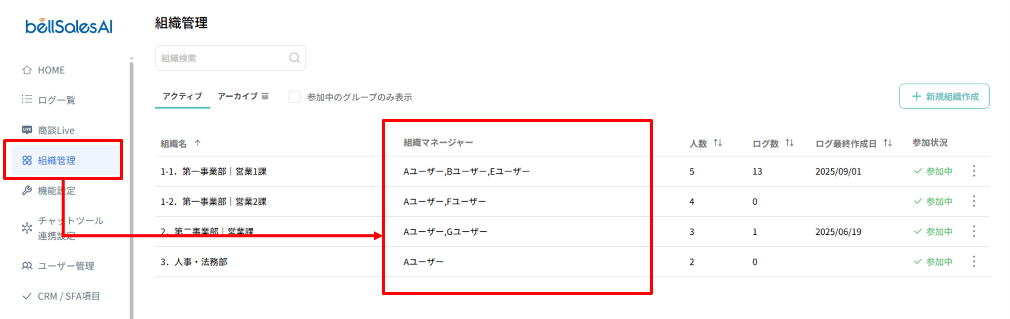 「どの組織がどの程度bellSalesAIを活用しているか」を把握することは、組織整理の判断材料になります。