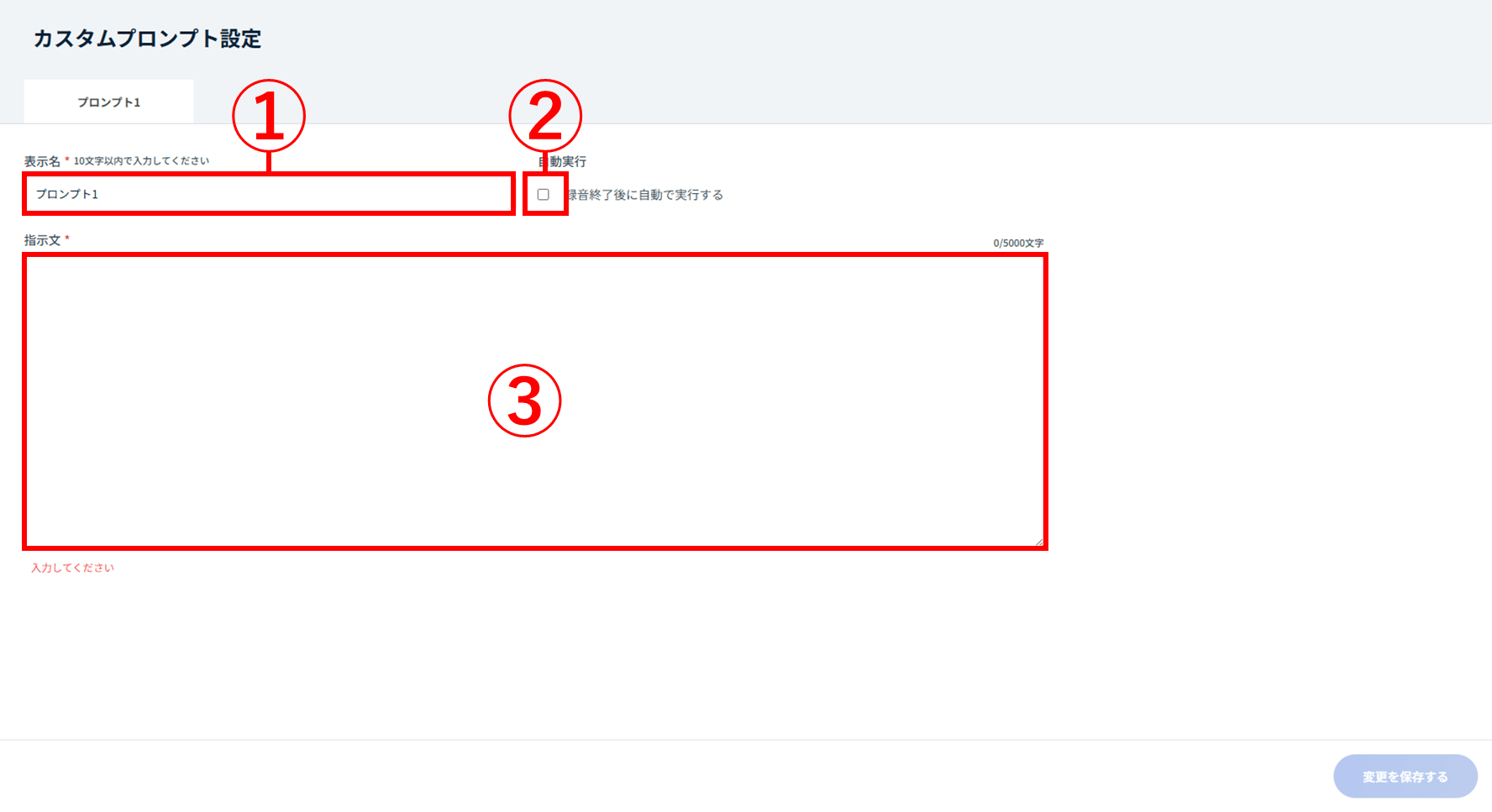 画面右下の[変更を保存する]をクリックし、カスタムプロンプトの編集は完了です。