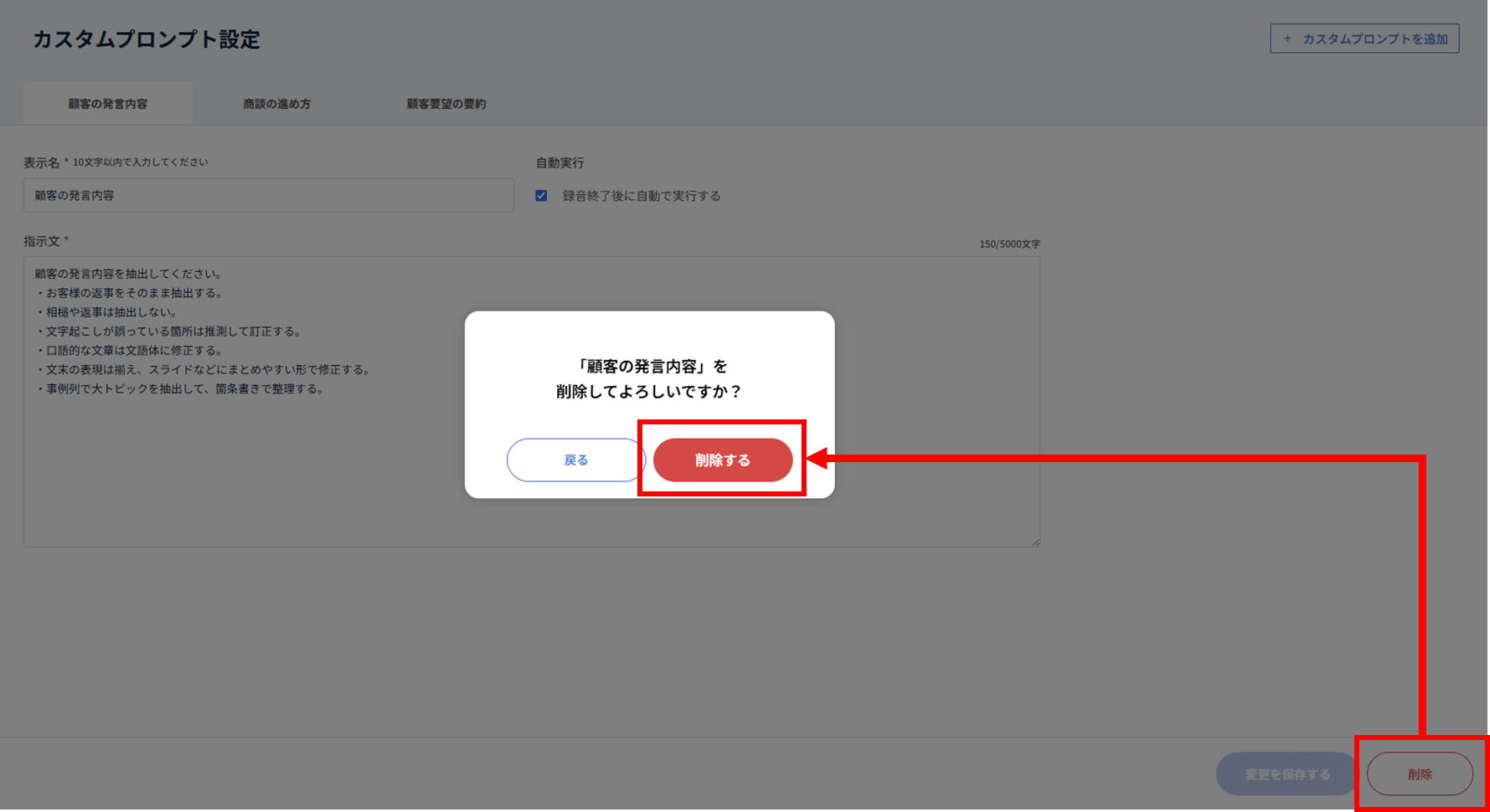 ここでは、カスタムプロンプトを編集・削除する手順を解説します。