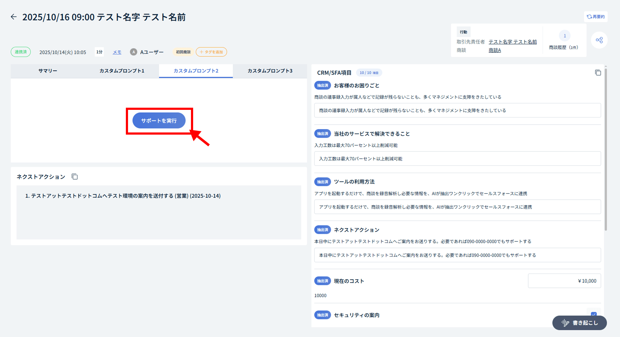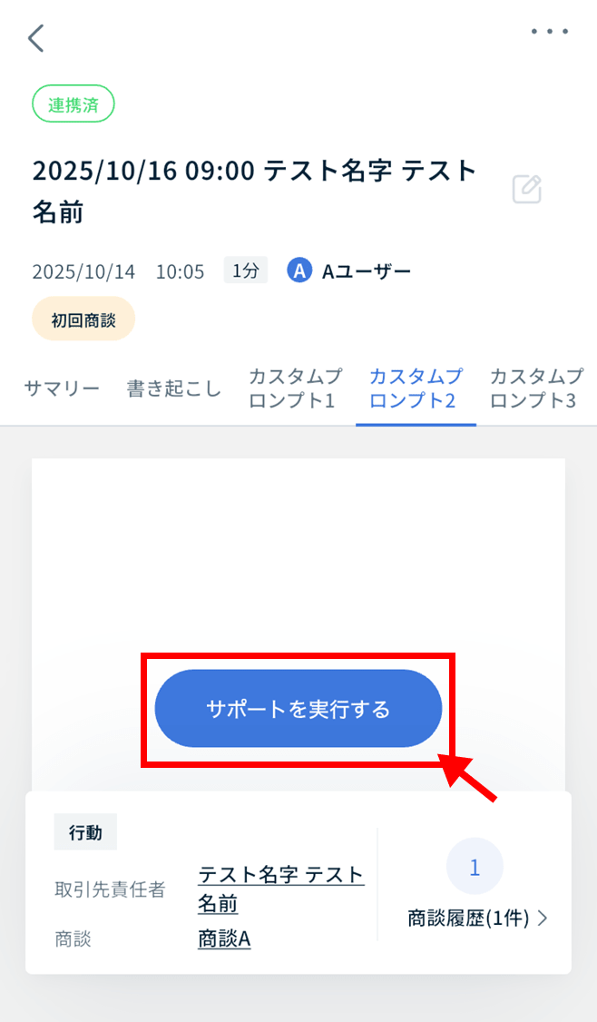 ここでは、カスタムプロンプトの要約を実行する(サポートを実行)手順を解説します。