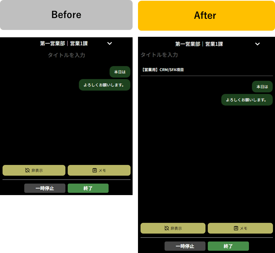 - 抽出カテゴリ(CRM/SFA項目カテゴリ)名がタイトル下部に表示