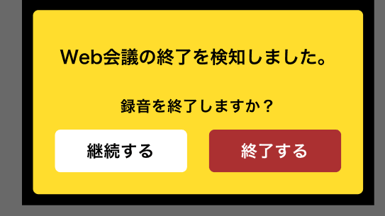 - Web会議終了を検知し、録音終了の確認アラートが表示されるように!アプリの付けっぱなしや記録の終了忘れをより防ぎやすくなります。