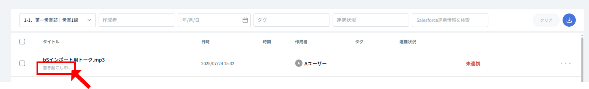 「書き起こし中」の表示が消えたらインポートは完了です。