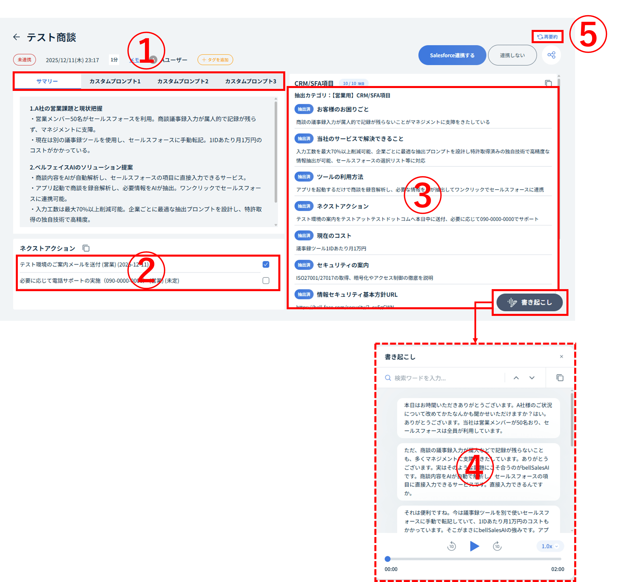 ※ 「Salesforce行動レコード候補」は、最大で録音開始時刻に近い直近の5件が表示されます。