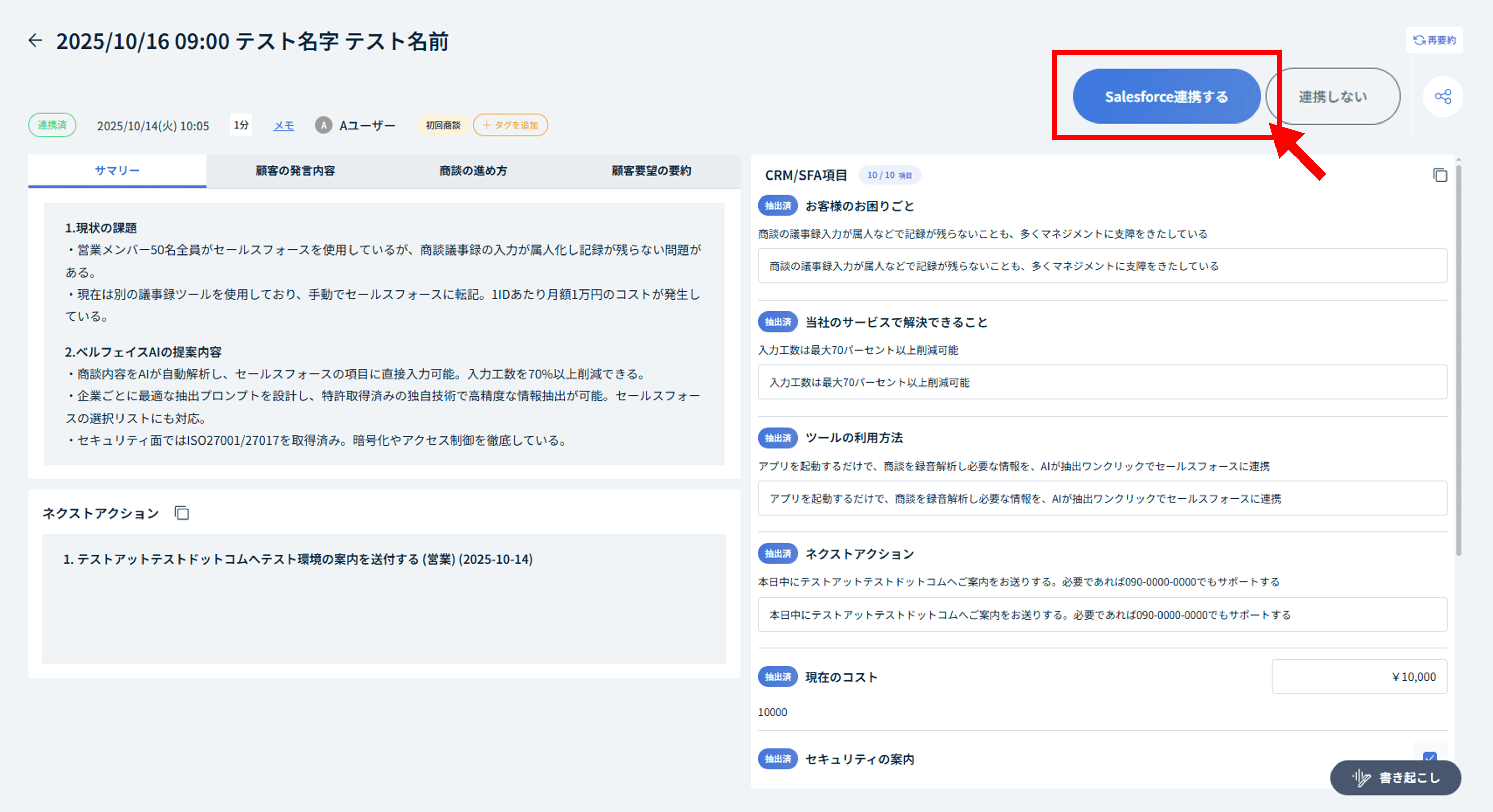 ここでは、記録終了後にSalesforceに連携する手順を解説します。