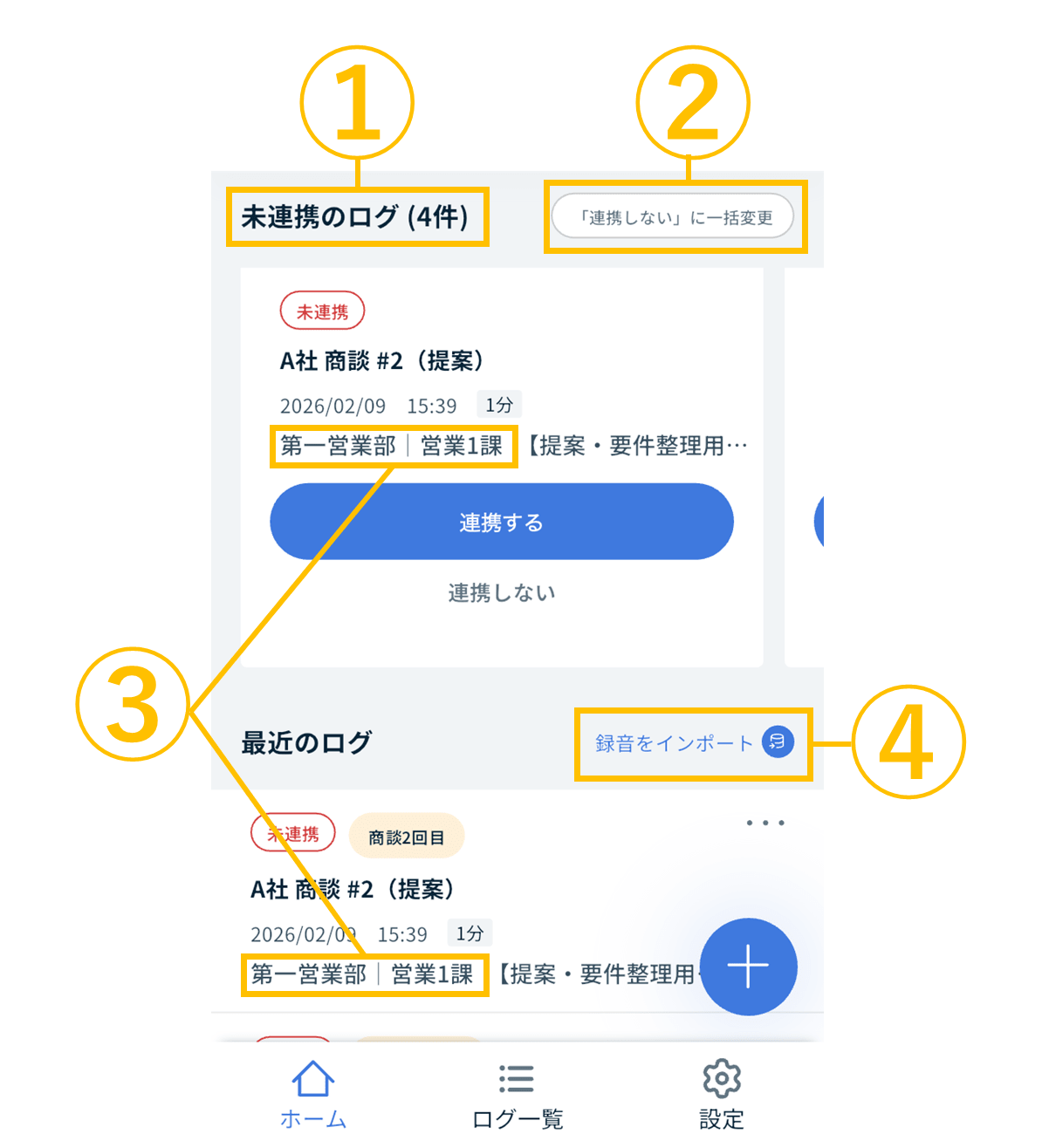 - 「未連携のログ」「最近のログ」一覧に、組織情報が表示されるようになります。
