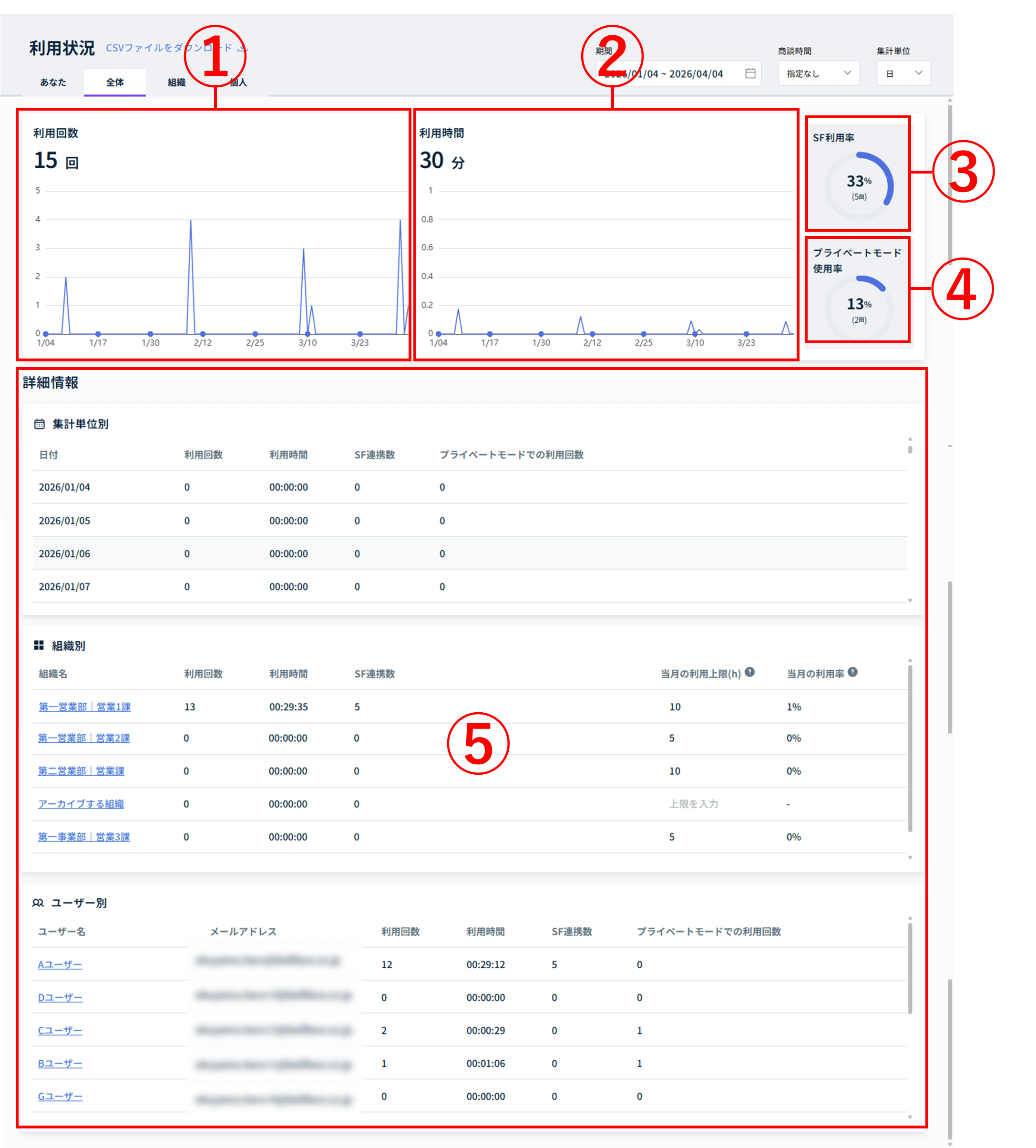利用状況|[全体]タブで利用状況を確認する
