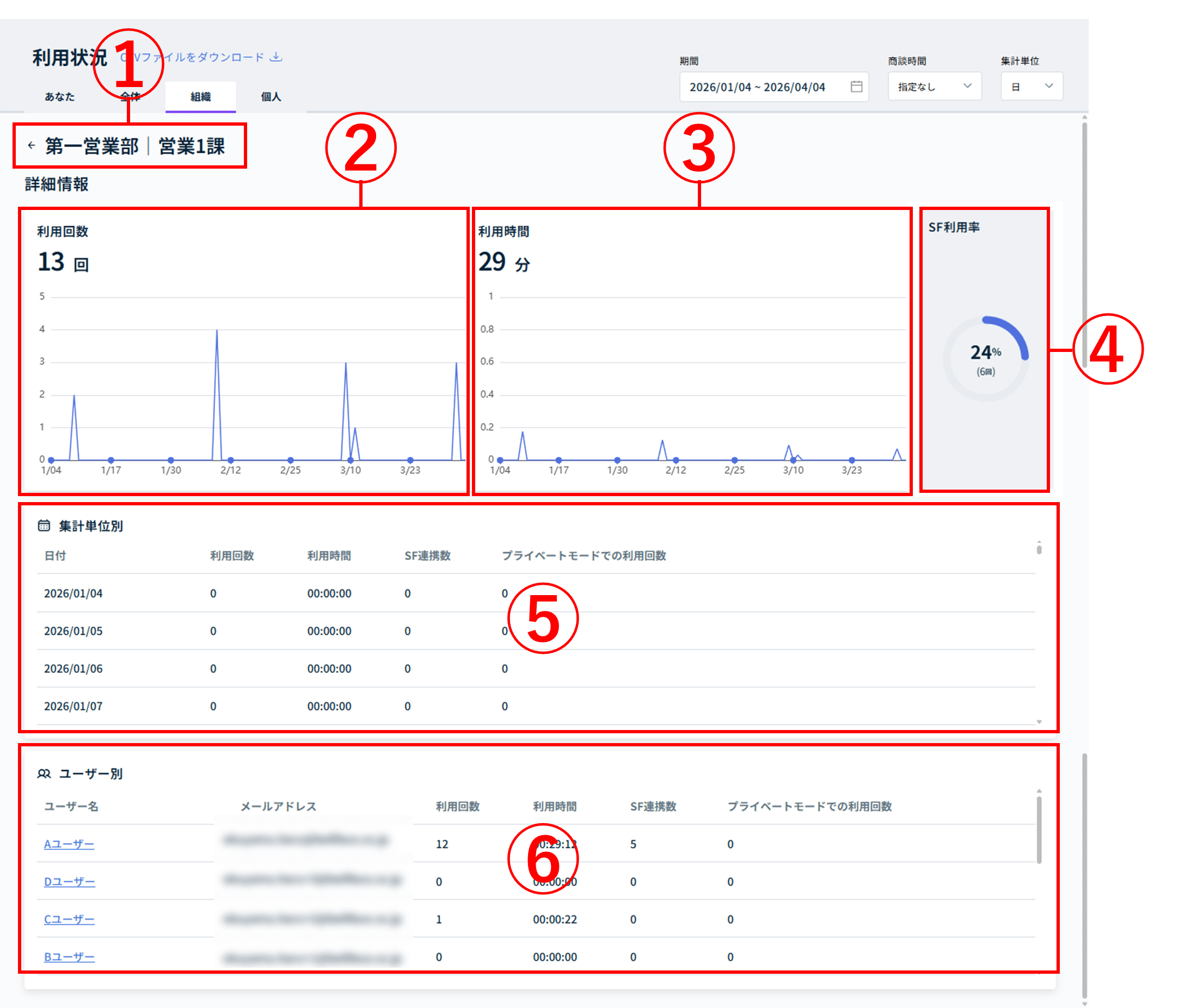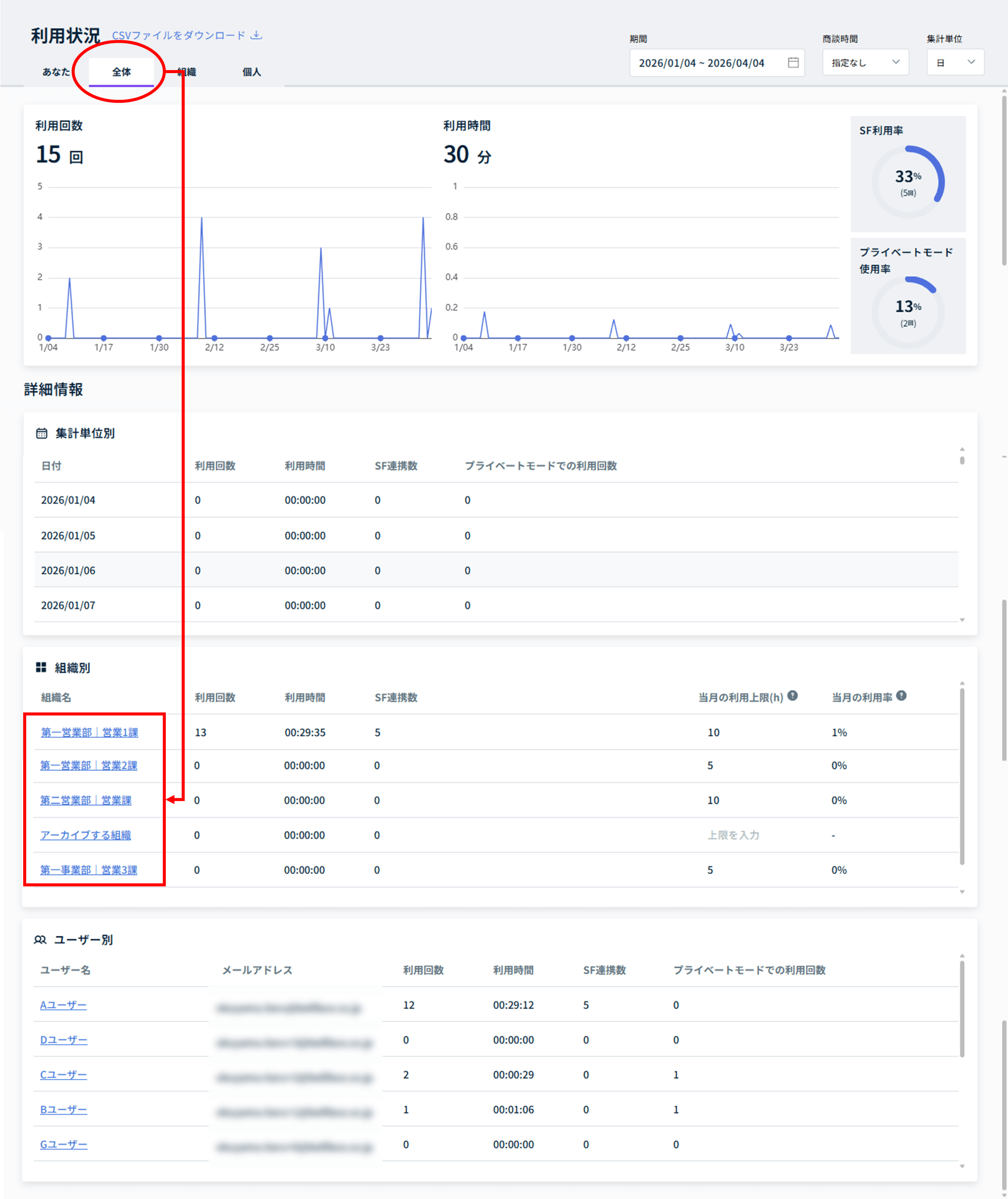 2.組織単位の利用状況画面解説