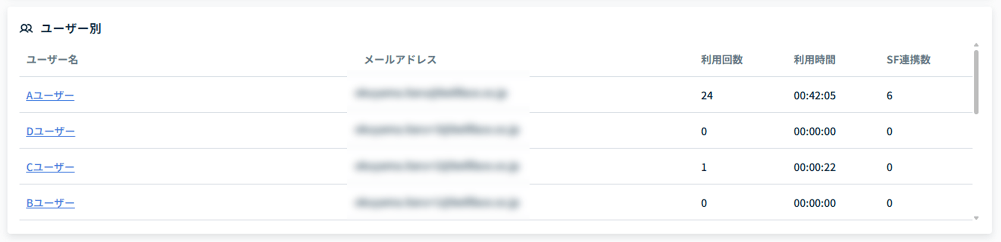 ユーザー別の利用状況が表示されます。