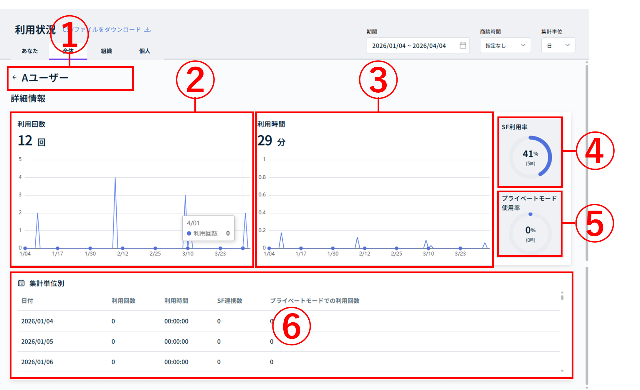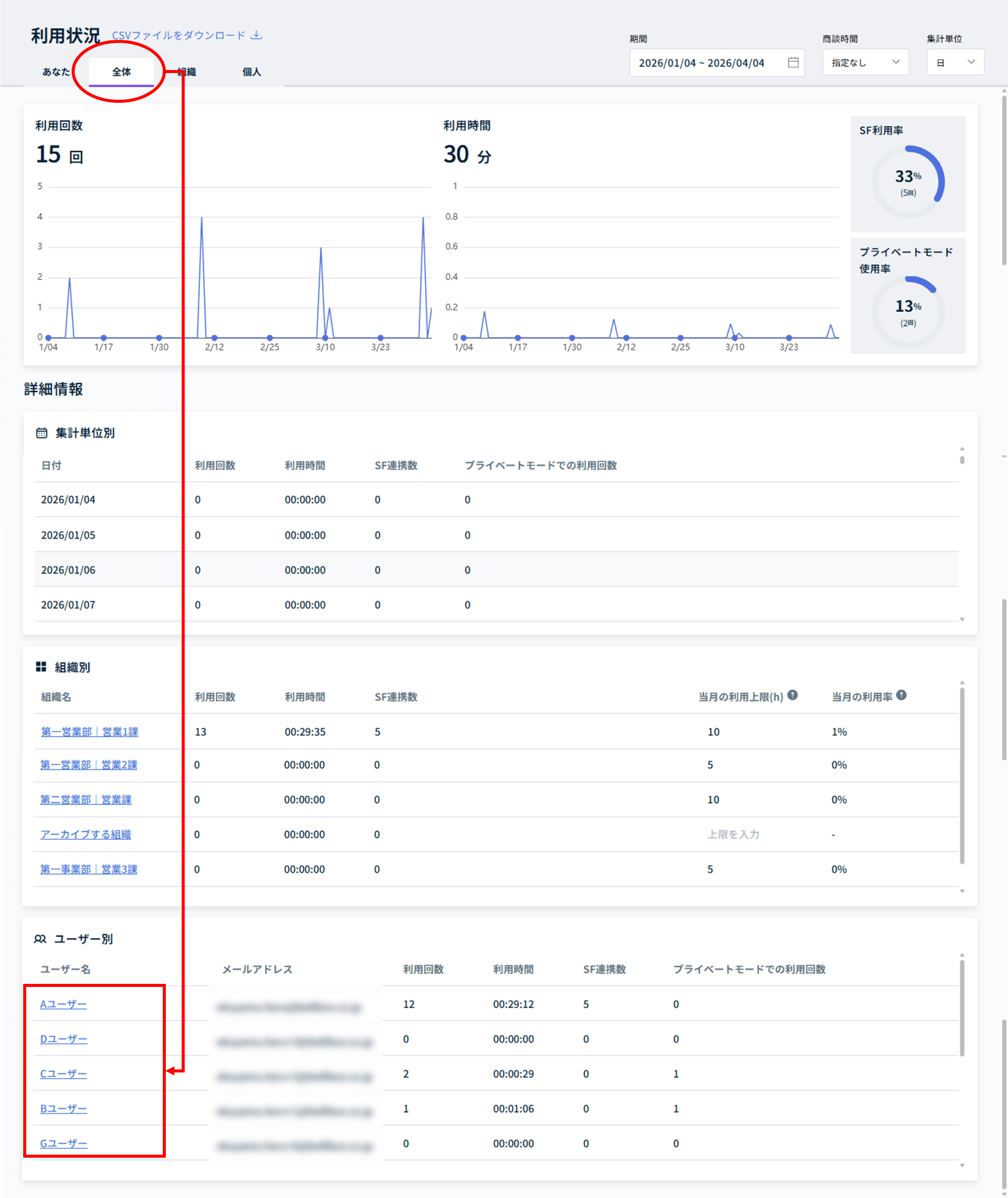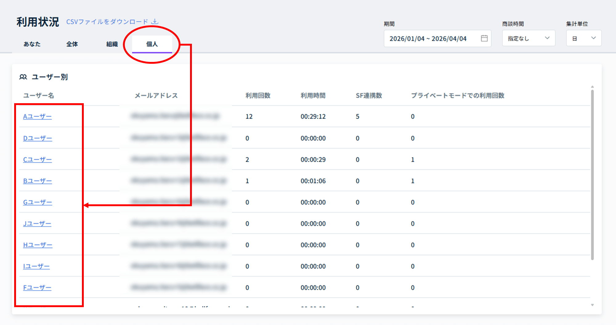 2.ユーザー単位の利用状況画面解説