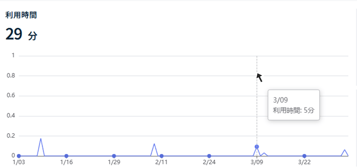 - グラフ上でマウスカーソルを合わせることで、指定した集計単位での利用時間が表示されます。
