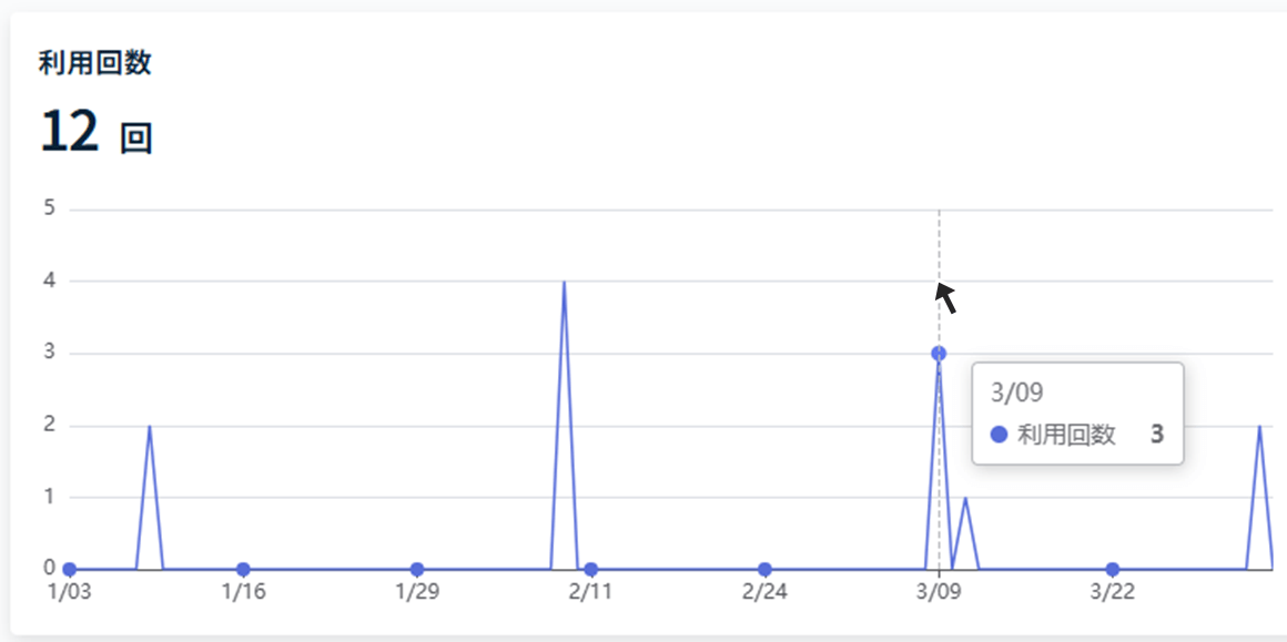- グラフ上でマウスカーソルを合わせることで、指定した集計単位での利用回数が表示されます。
